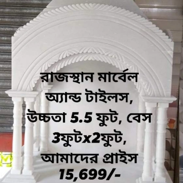 সাদা মার্বেল দিয়ে তৈরি মন্দির/সিংহাসন যার উচ্চতা ৫.৫ ফুট। হোম ডেলভারি এর ব্যাবস্থা আছে এবং ডেলিভারি ফ্রী। আমাদের ওয়েবসাইটে আরো মন্দির, সিংহাসন এবং তুলসী মঞ্চ এর ডিটেলস দেওয়া আছে। আমাদের ওয়েবসাইট